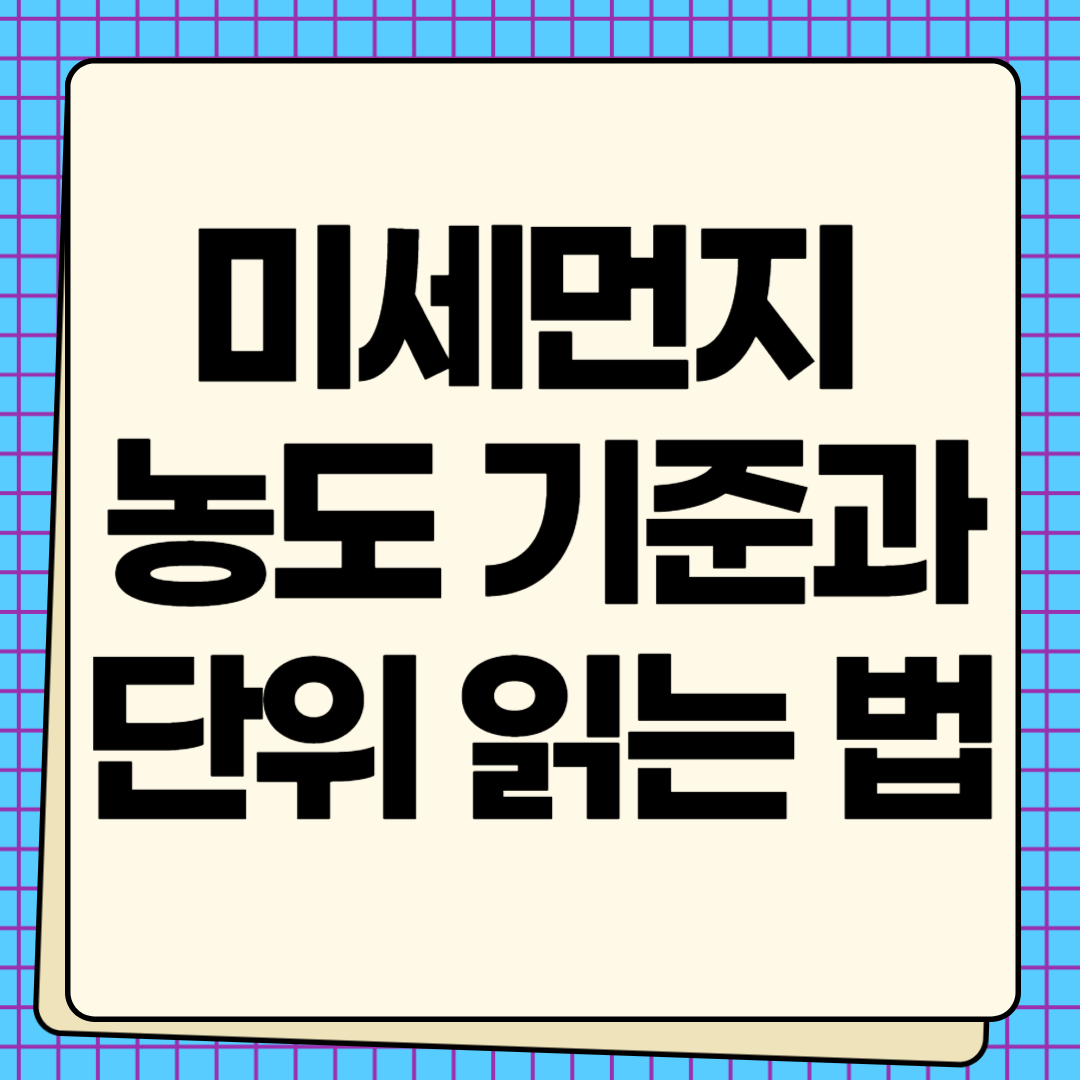 미세먼지 농도는 µg/m³(마이크로그램 퍼 세제곱미터, ㎍/㎥) 단위로 측정됩니다. 이 단위는 공기 1세제곱미터 안에 포함된 미세먼지 입자의 양을 의미합니다.